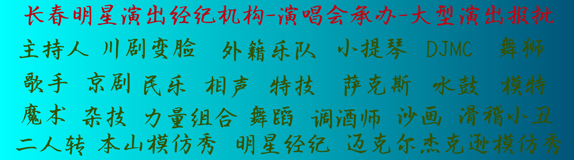 吉林長春慶典演出公司-承接各類慶典演出策劃、開業(yè)慶典、周年慶典、頒獎(jiǎng)慶典、商業(yè)演出、演藝團(tuán)隊(duì)、開工慶典、奠基慶典、落成慶典、投產(chǎn)儀式、喬遷慶典、會務(wù)論壇活動、行業(yè)會議、高峰論壇、經(jīng)銷商會議、代理商會議、新品發(fā)布會、年會晚會活動、公司企業(yè)年會、年終晚會、文藝晚會、中秋晚會、周年晚會、音樂節(jié)、消夏啤酒節(jié)、明星演唱...